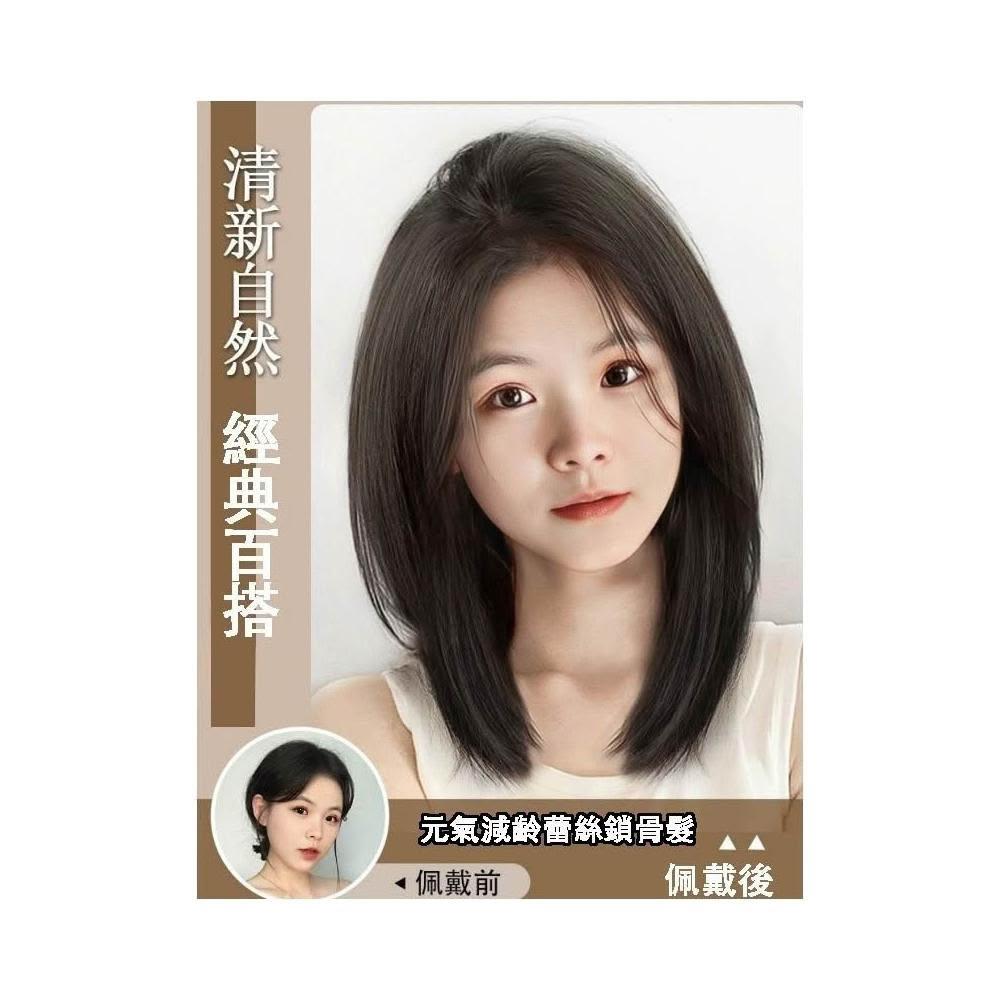 黑茶/冷棕 整頂假髮 女中長髮全頭套新款中分八字瀏海鎖骨髮自然假髮套6999 B I