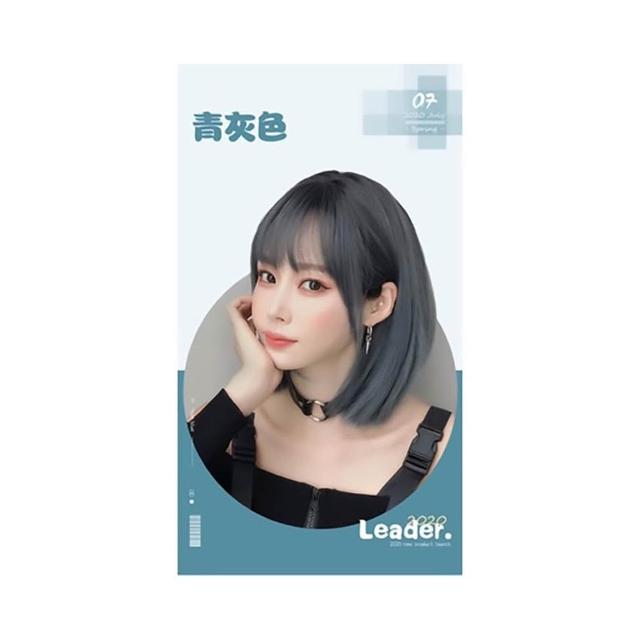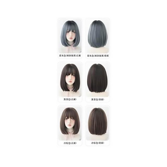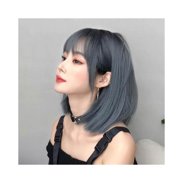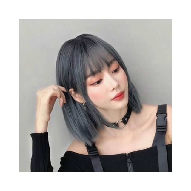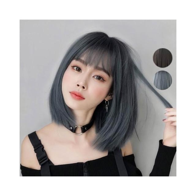 青灰色/黑茶色 韓國新品漸變色挑染整頂式假髮女 空氣劉海短直假髮女 全頂假髮3111 509 B I