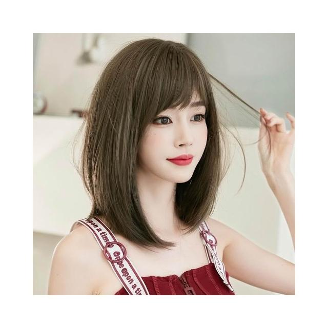 冷棕/黑茶色 韓系整頂假髮女 可斜可齊假髮 中長整頂髮套假髮套自然逼真齊肩髮空氣劉海假髮 6135 5276 I