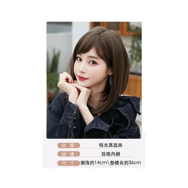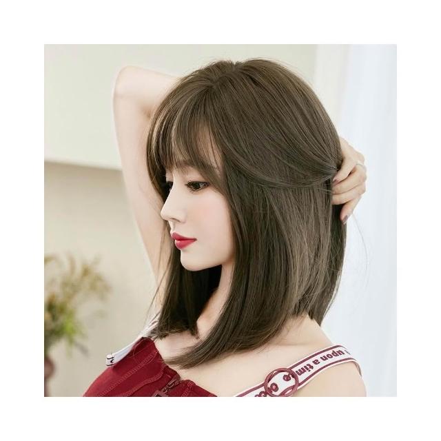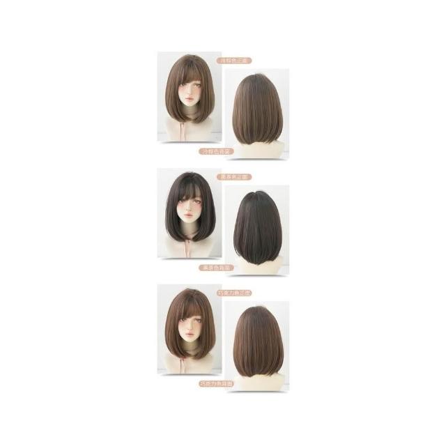 冷棕/黑茶色 韓系整頂假髮女 可斜可齊假髮 中長整頂髮套假髮套自然逼真齊肩髮空氣劉海假髮 6135 5276 I