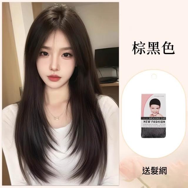 棕黑/冷棕色 中分八字瀏海 層次感 整頂假髮 假髮 空氣劉海 假髮女 wig 假发 假髮女 黑色假髮 黑長直假髮
