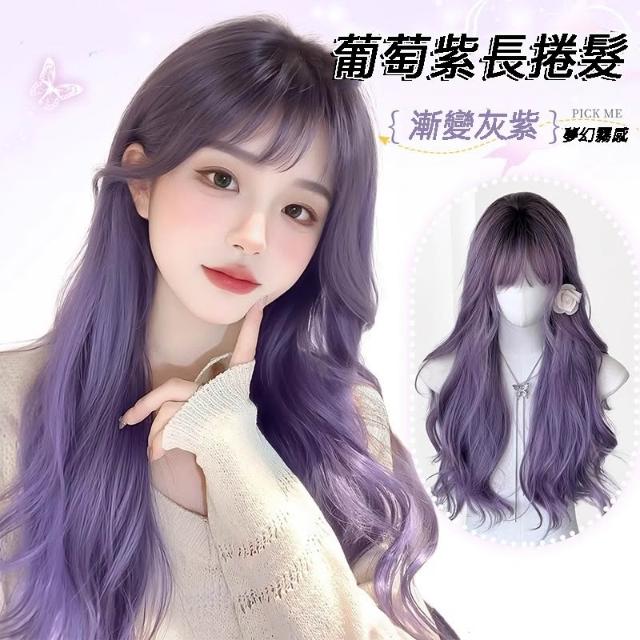 漸變灰紫 整頂假髮 假髮 空氣劉海 假髮女 wig 假发 假髮女整頂 長捲假髮 大波浪假髮 假頭髮