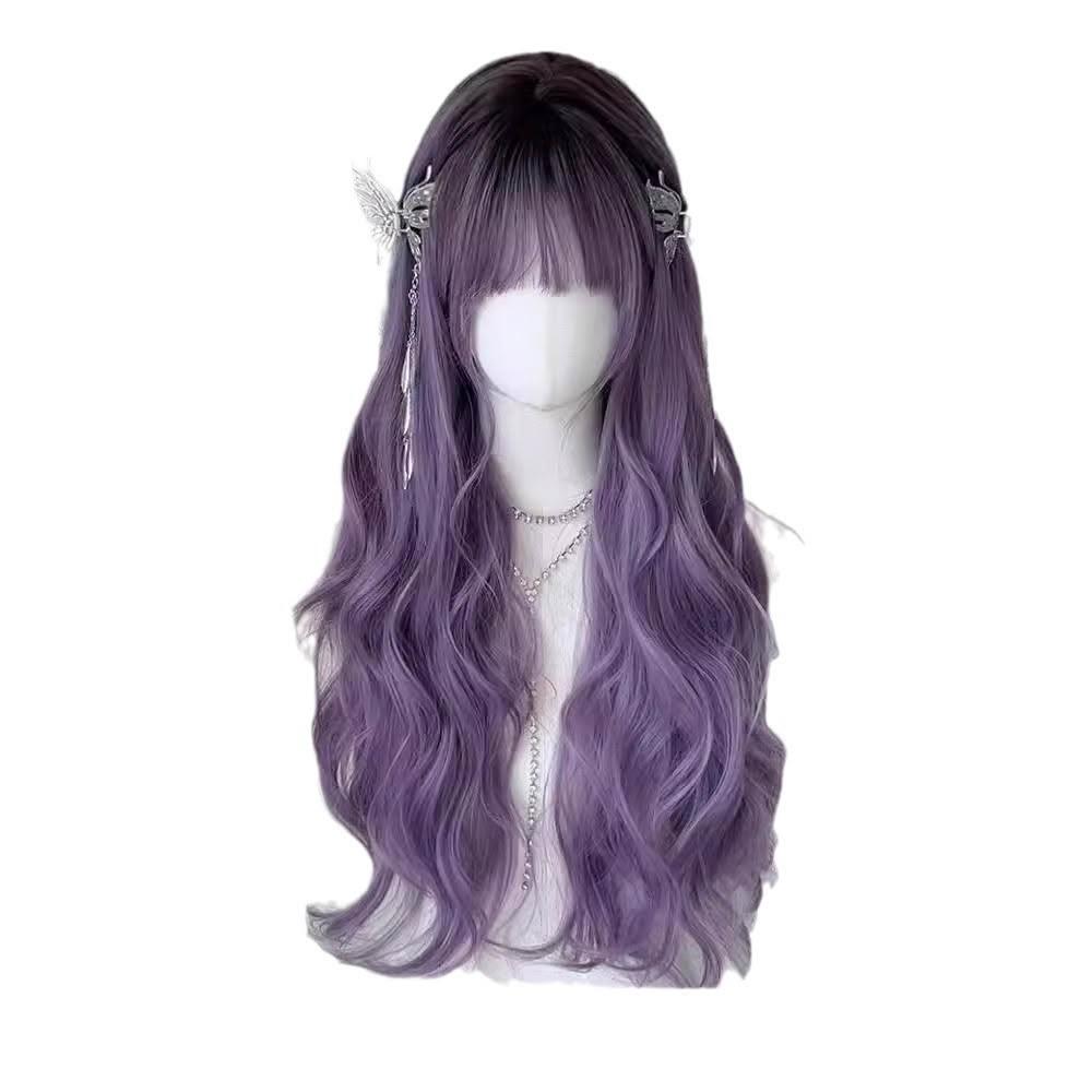 漸變灰紫 整頂假髮 假髮 空氣劉海 假髮女 wig 假发 假髮女整頂 長捲假髮 大波浪假髮 假頭髮