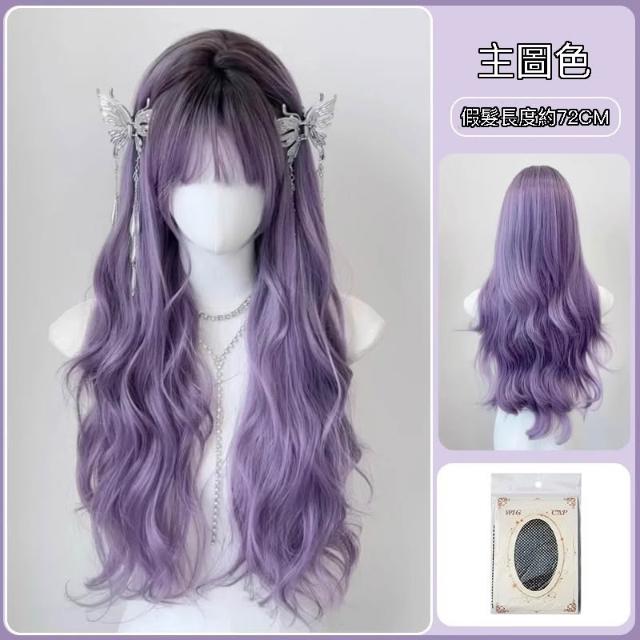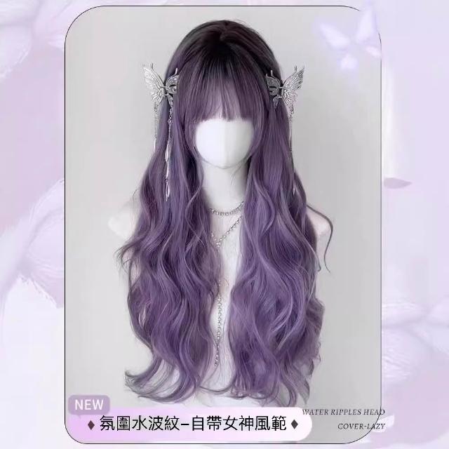 漸變灰紫 整頂假髮 假髮 空氣劉海 假髮女 wig 假发 假髮女整頂 長捲假髮 大波浪假髮 假頭髮