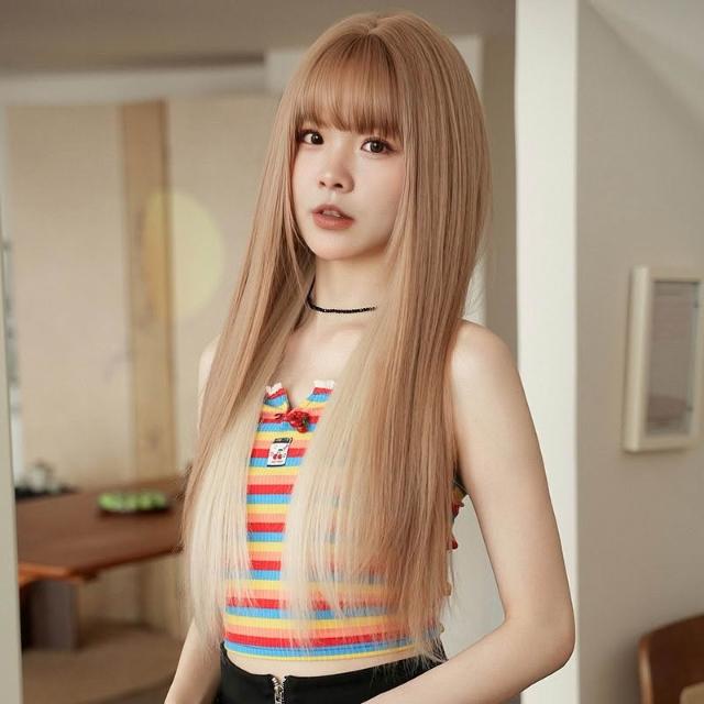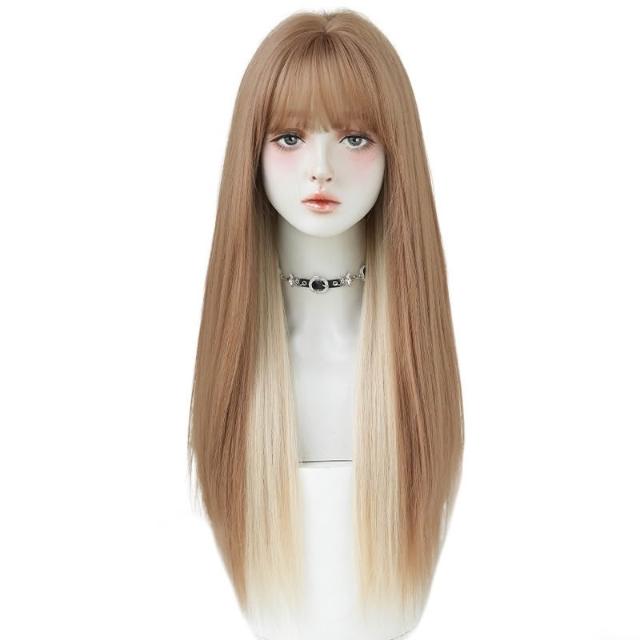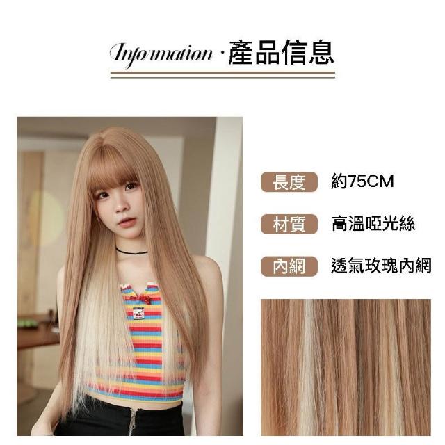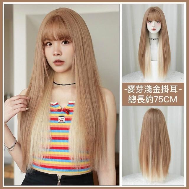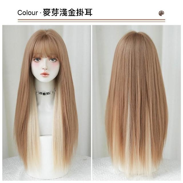 麥芽淺金挑染 假髮女長直髮麥芽淺金挑染漸層長髮整頂全頭套 0408