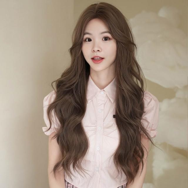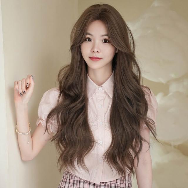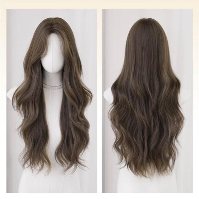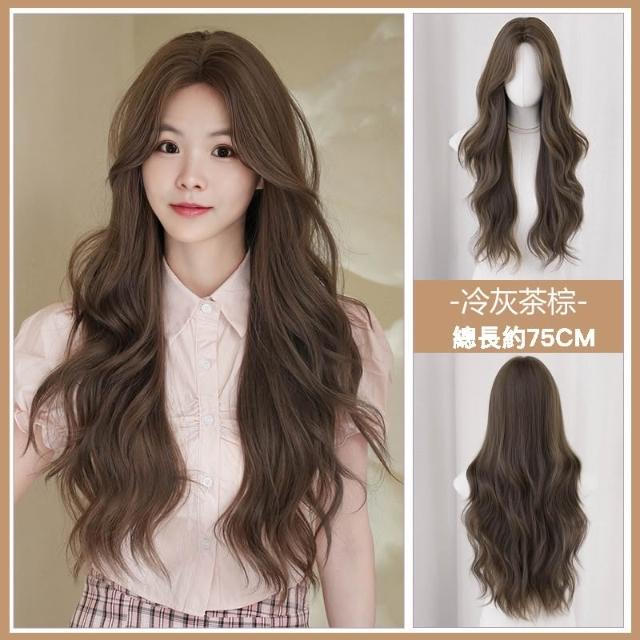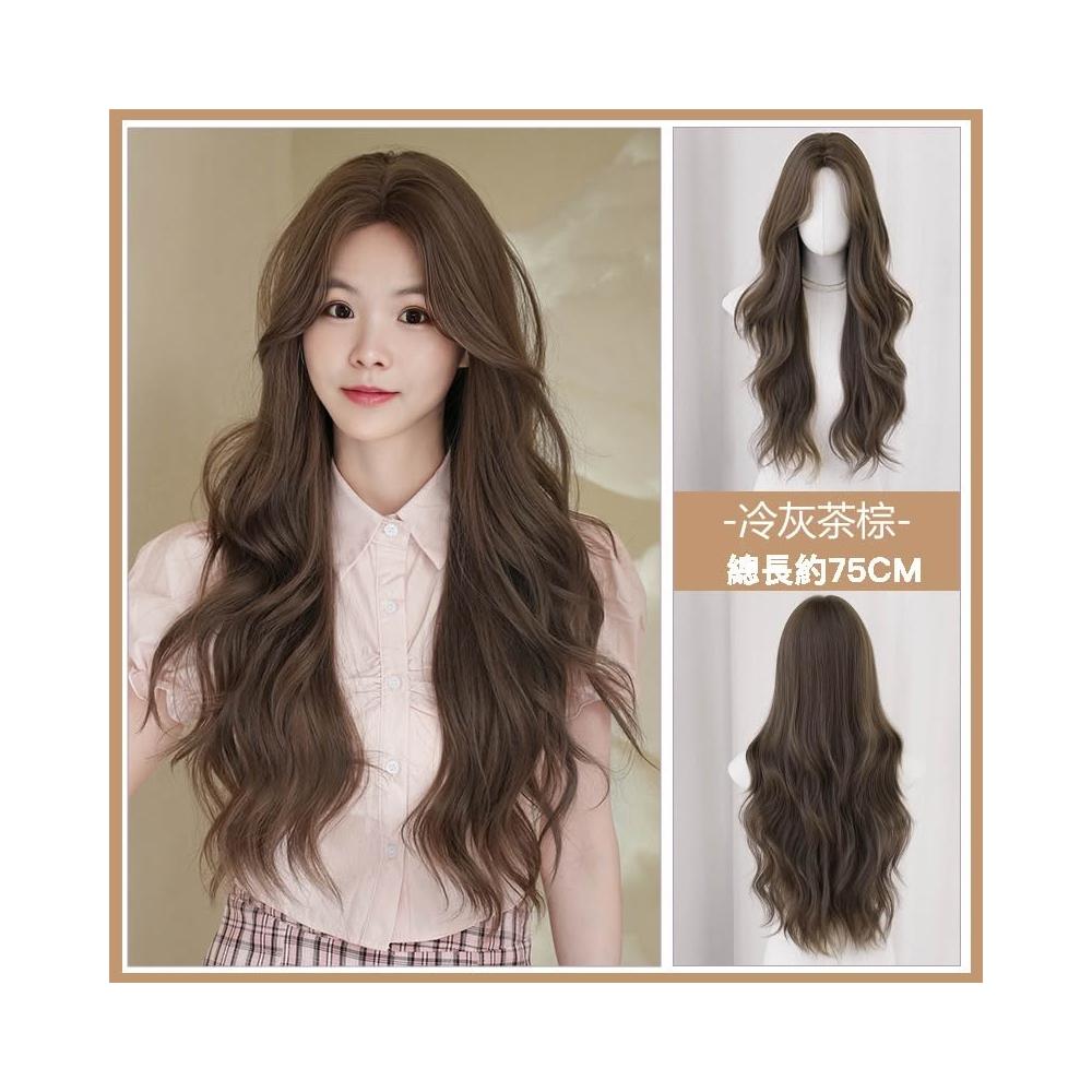 冷灰茶棕 假髮女長捲髮中分波浪整頂頭套假髮冷灰茶棕色 0417