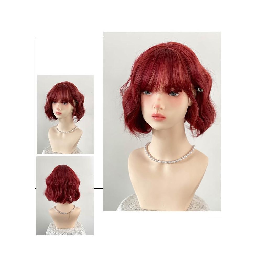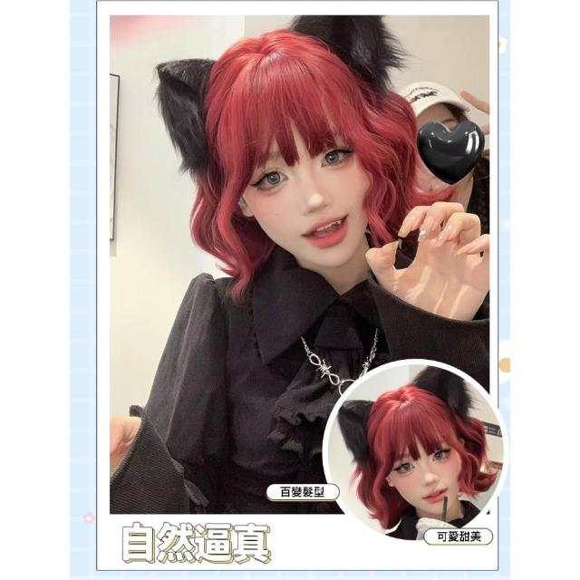 紅色 假髮女全頭套Lolita蛋捲髮短髮假髮女慵懶捲時尚頭套