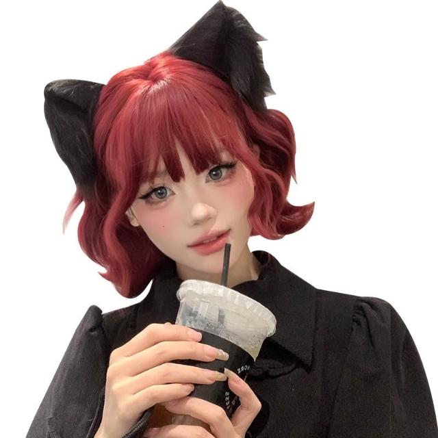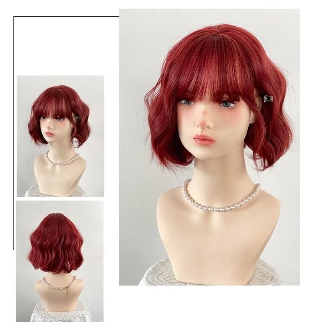 紅色 假髮女全頭套Lolita蛋捲髮短髮假髮女慵懶捲時尚頭套