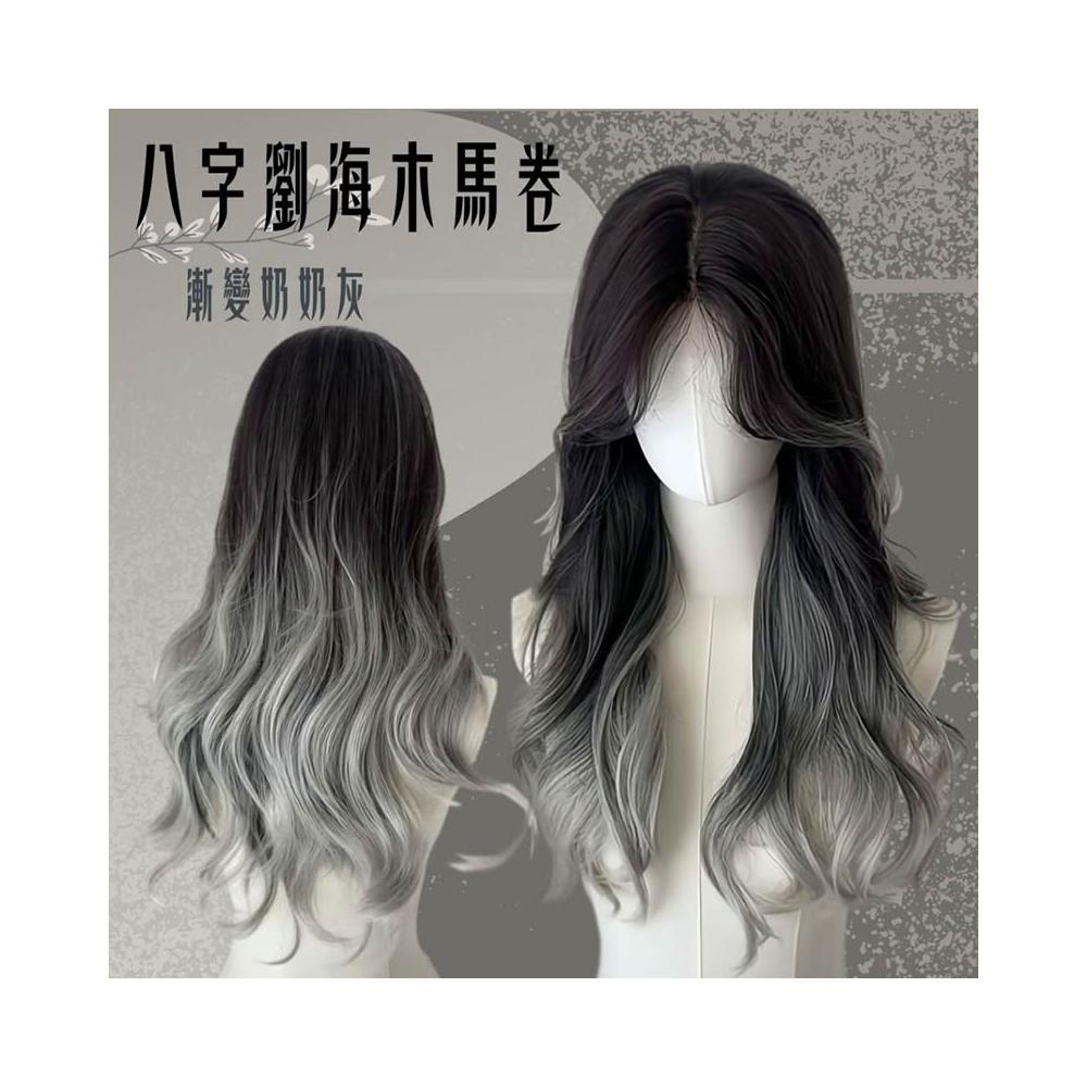 漸變奶奶灰 假髮女奶奶灰巴黎畫染漸層氛圍感中分長捲髮模擬全頭套女