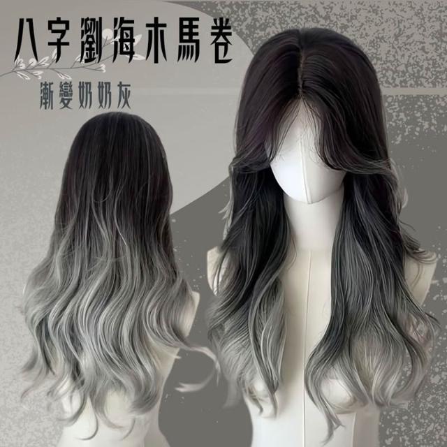 漸變奶奶灰 假髮女奶奶灰巴黎畫染漸層氛圍感中分長捲髮模擬全頭套女