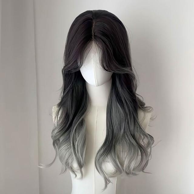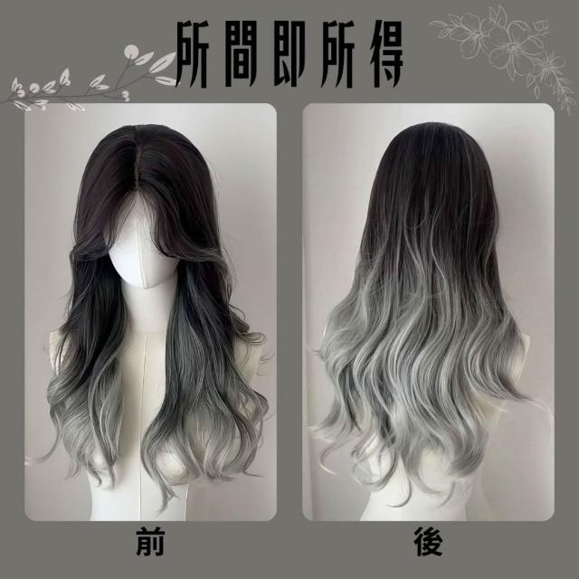 漸變奶奶灰 假髮女奶奶灰巴黎畫染漸層氛圍感中分長捲髮模擬全頭套女