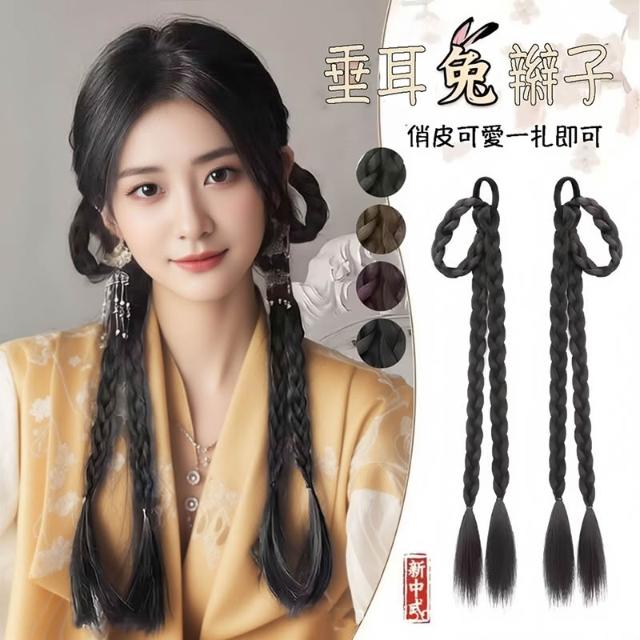 新中式 雙馬尾馬尾假髮 拳擊辮子假馬尾 兔耳馬尾辮子假髮 編髮假髮