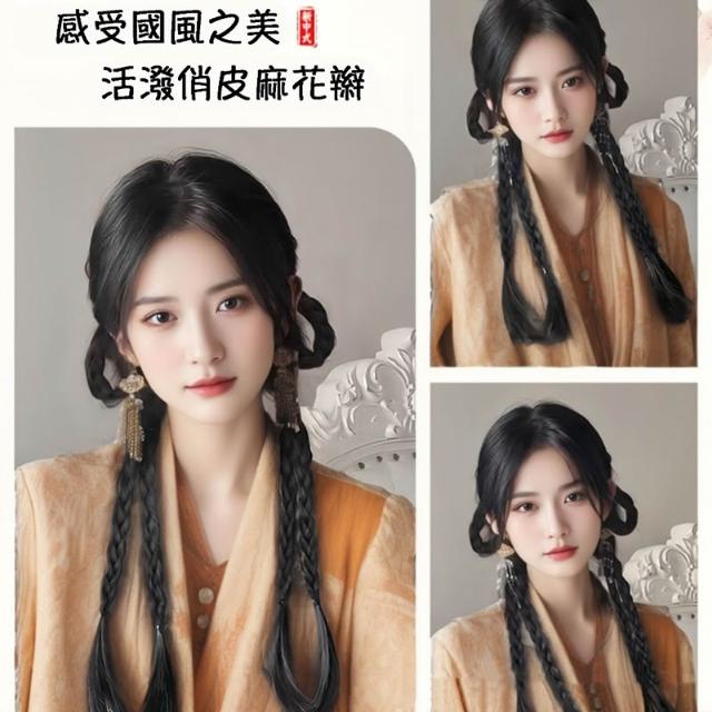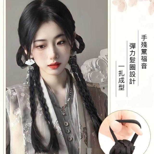 新中式 雙馬尾馬尾假髮 拳擊辮子假馬尾 兔耳馬尾辮子假髮 編髮假髮