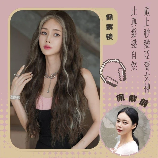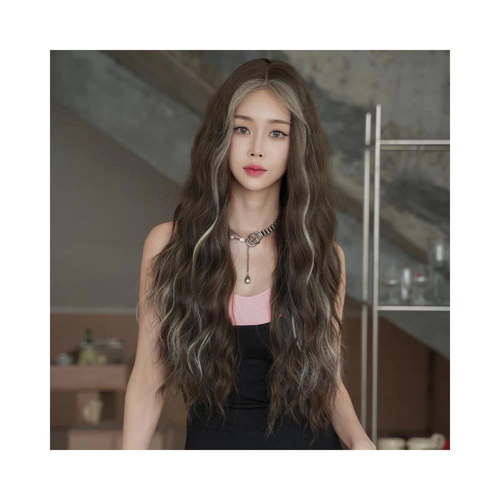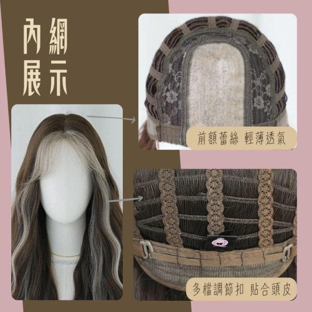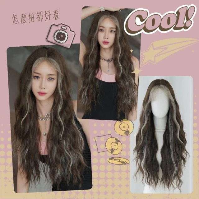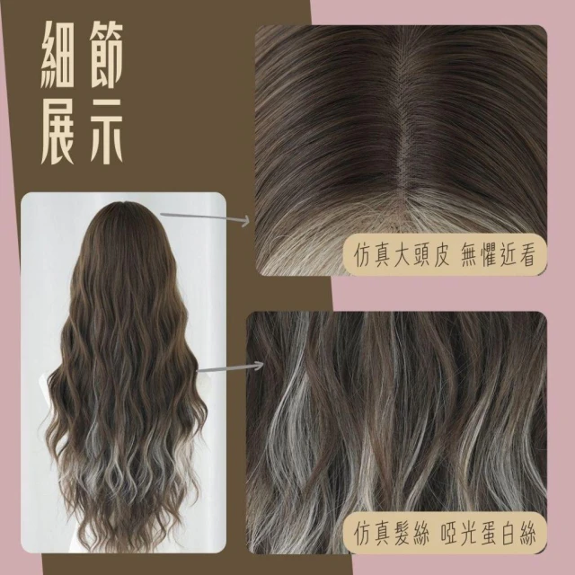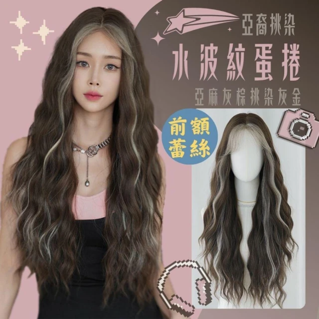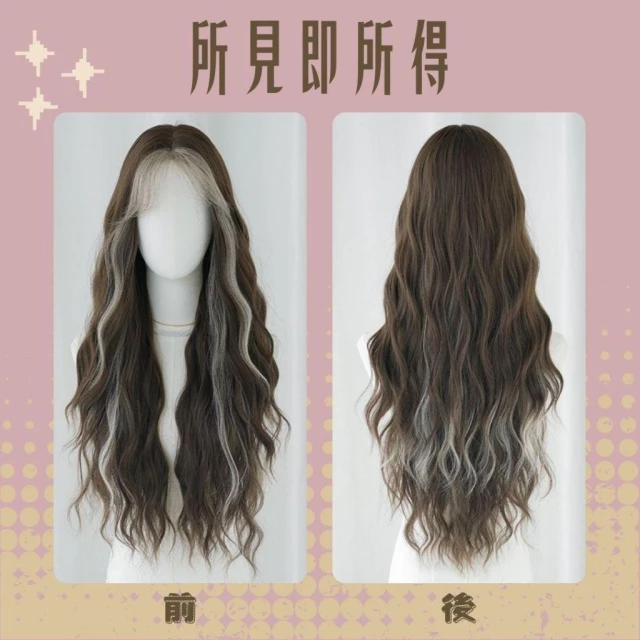 亞麻灰棕挑染灰金假髮女長捲髮中分亞麻色挑染整頂頭套前額蕾絲一字手織