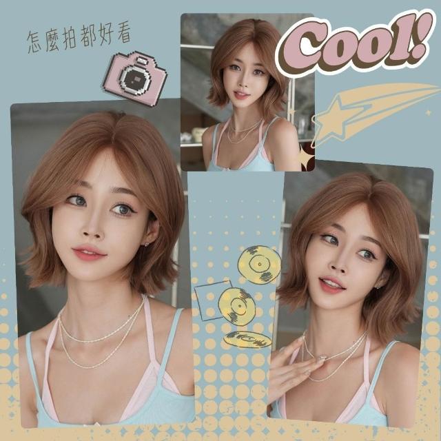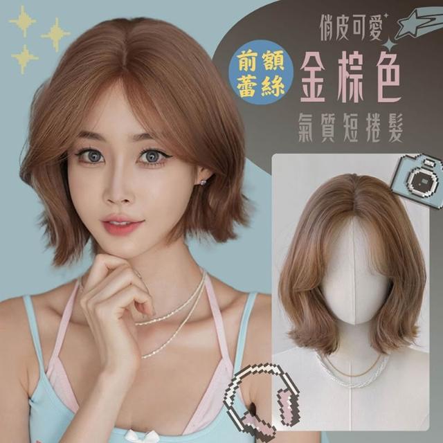 日韓女式短髮捲髮化纖中分一字前額手織個性造型短髮