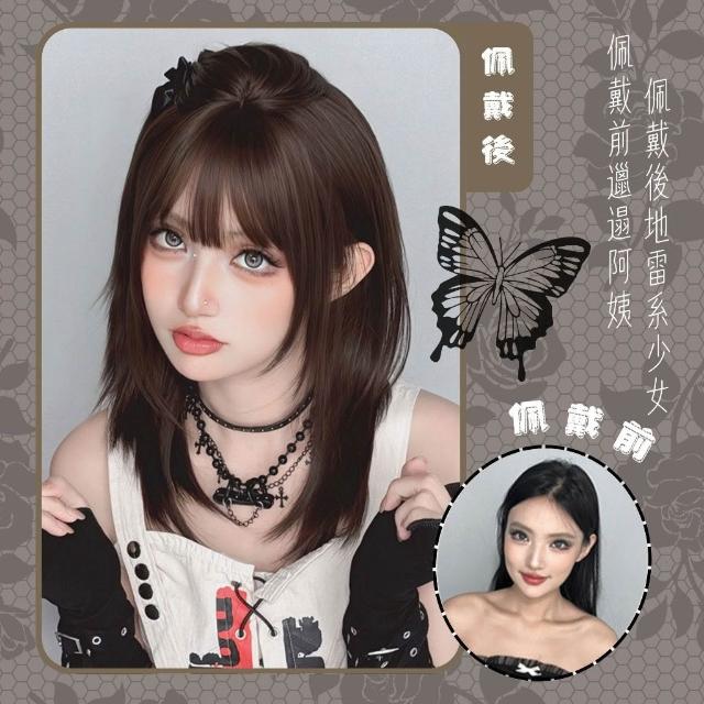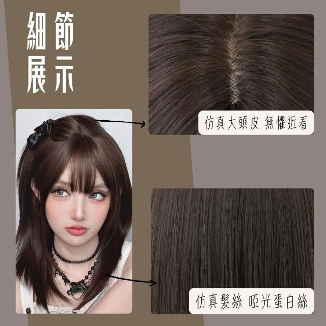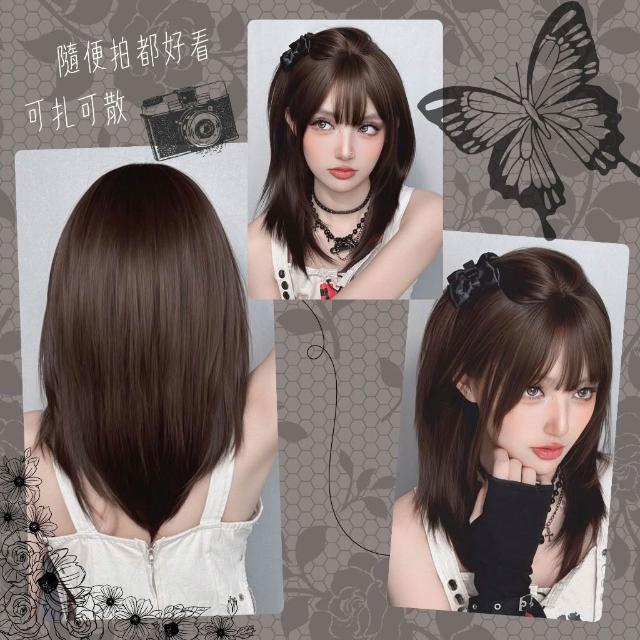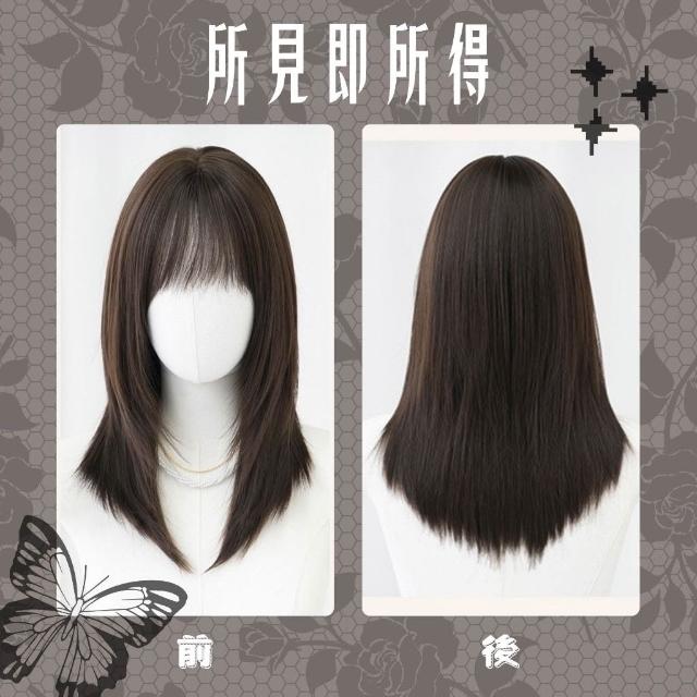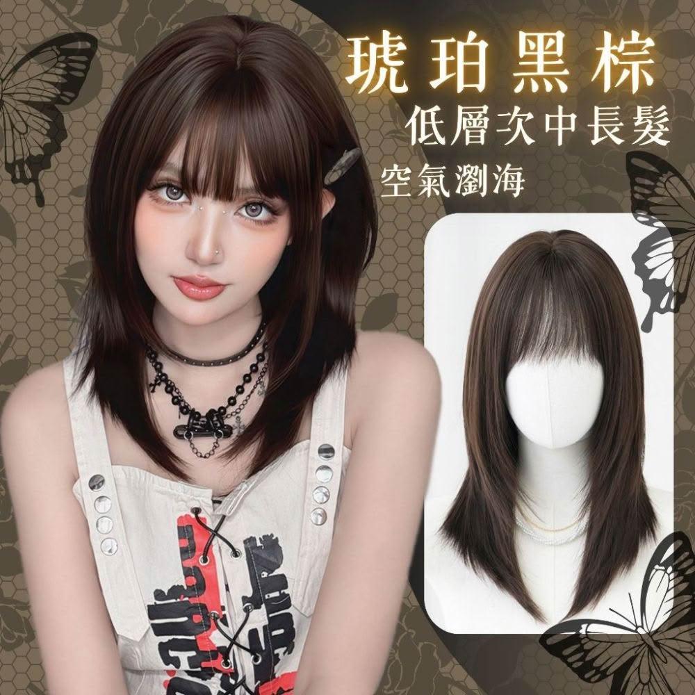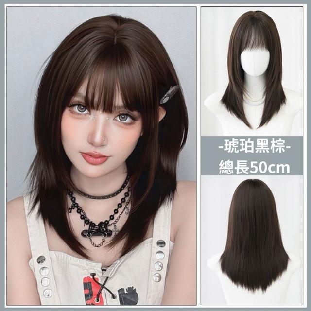 琥珀黑棕 假髮女長髮姬式整頂全頭套化纖仿真瀏海直髮高溫絲琥珀黑棕整頂髮
