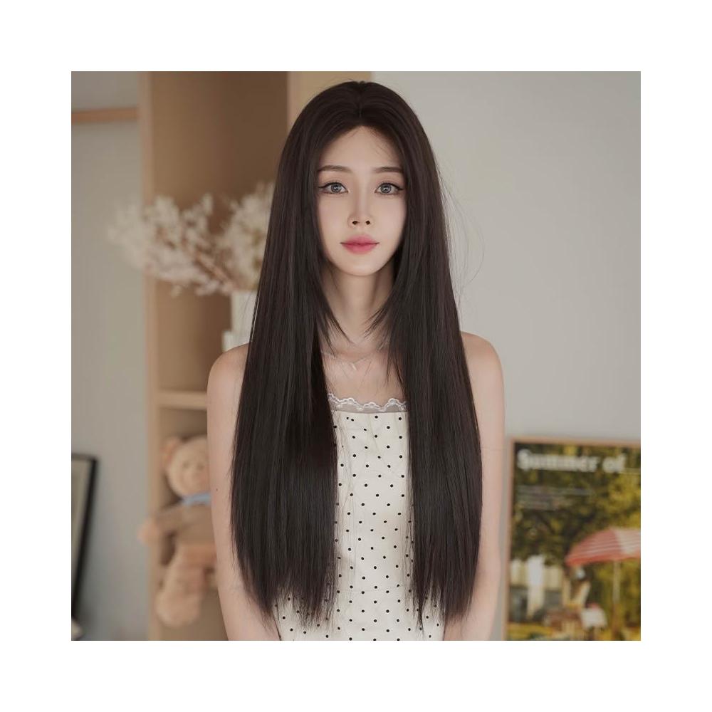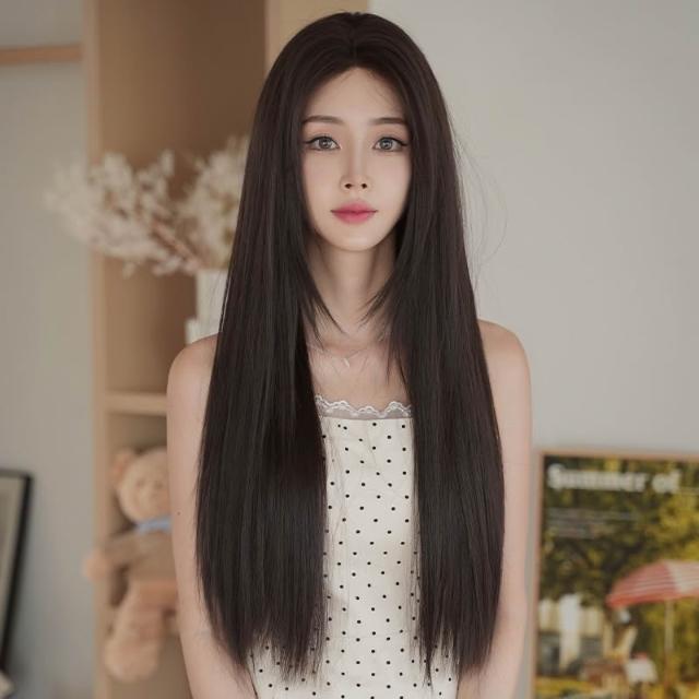 前額一字蕾絲假髮 黑茶色 整頂假髮 假髮 蕾絲內網 假髮女 中分假髮 長直假髮 女生假髮 假頭髮