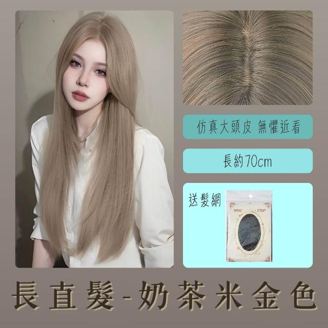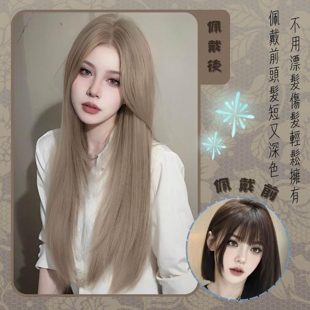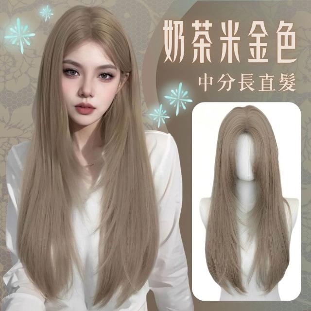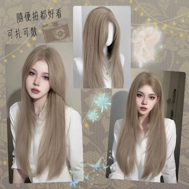 奶茶米金色八字劉海整頂假髮 假髮 長假髮 假髮女 wig 仿真 假髮女整頂 假頭髮 中分假髮