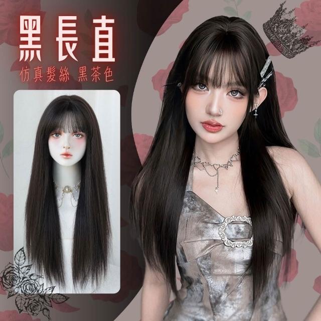 黑長直整頂假髮 假髮 空氣劉海 假髮女 wig 假髮 假髮女整頂 黑色假髮 長假髮 黑長直假髮 假頭髮