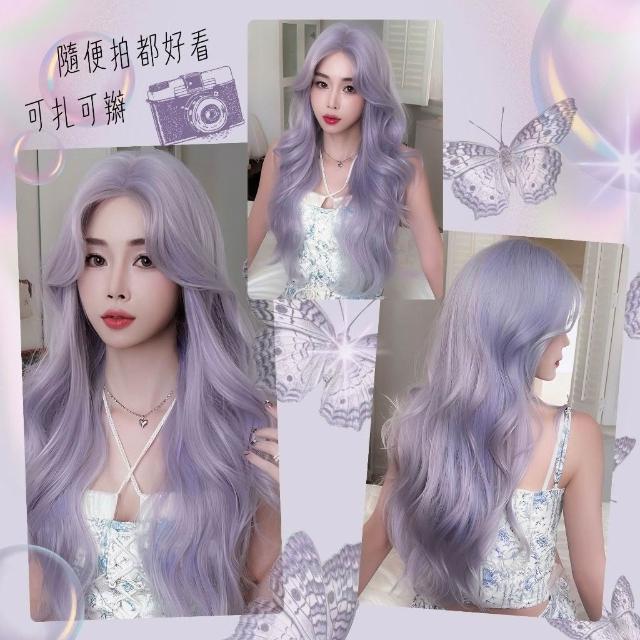夢幻紫 假髮女長捲髮中分大波浪全頭套化纖一字手鉤前額蕾絲夢幻紫色全頭套