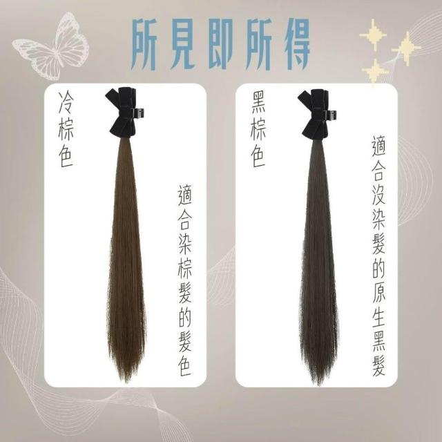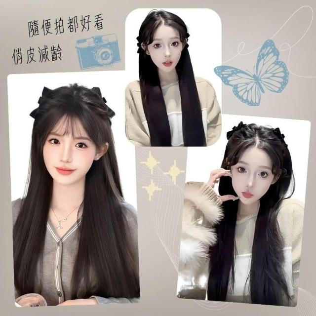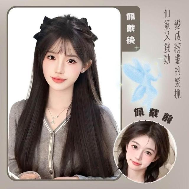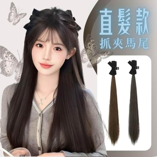 日常兩色直髮款馬尾 假髮辮子新中式自然模擬髮蝴蝶結抓夾半紮精靈耳髮束假髮辮馬尾