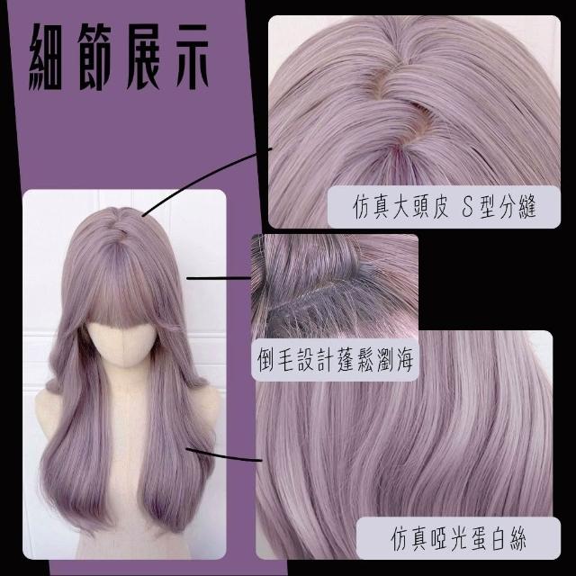假髮女長髮灰紫色長捲髮大波浪女團lolita自然顯白全頭套式