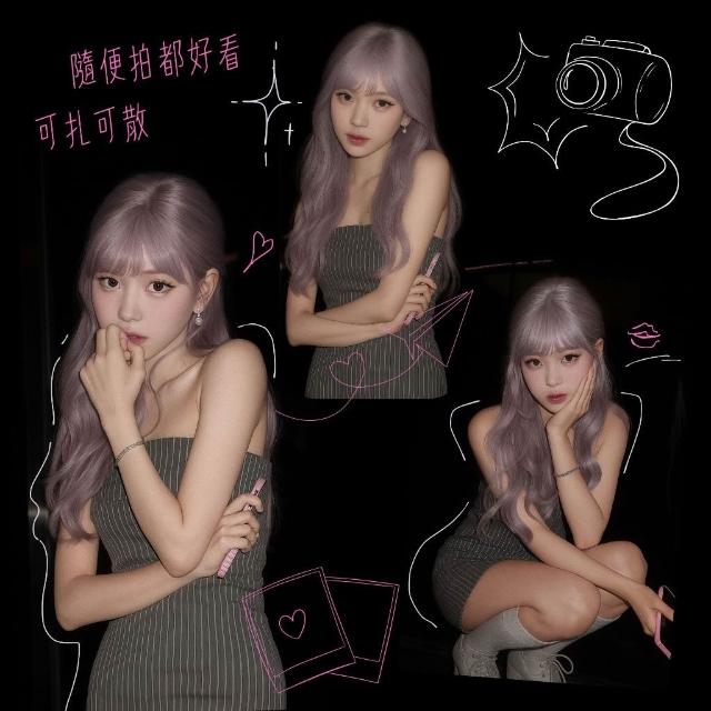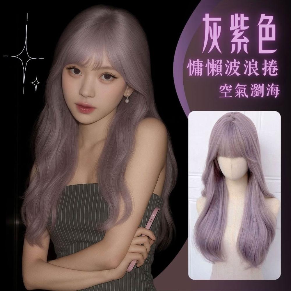 假髮女長髮灰紫色長捲髮大波浪女團lolita自然顯白全頭套式