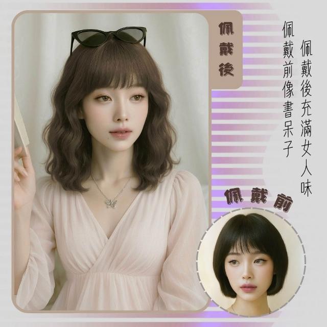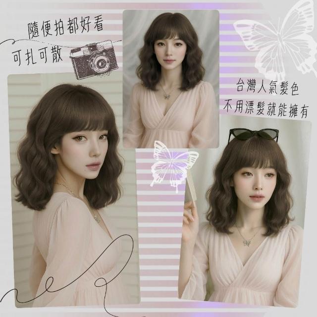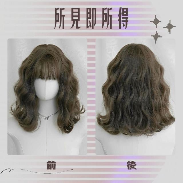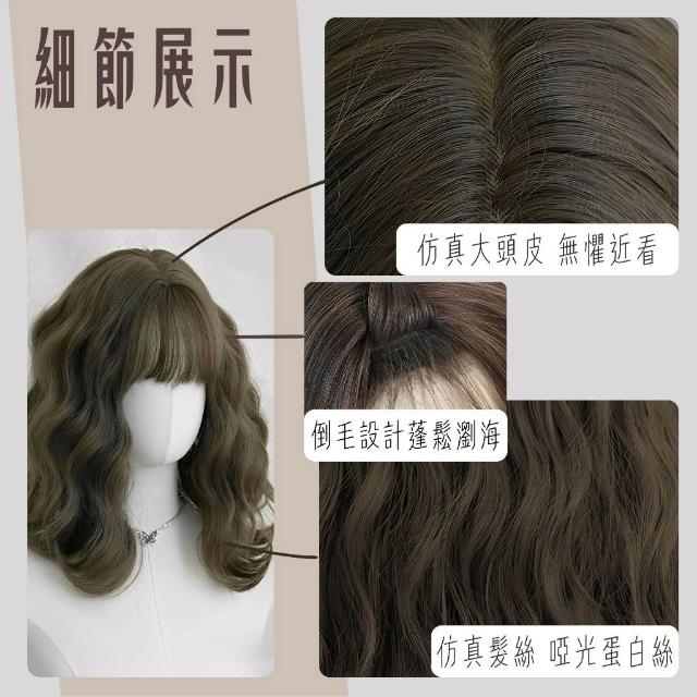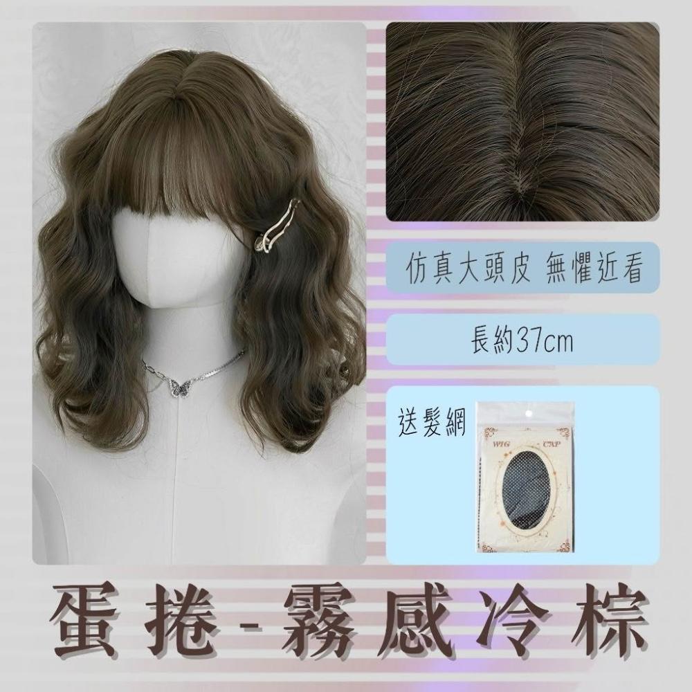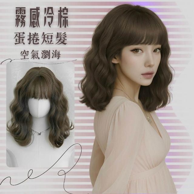 假髮女短捲髮夏季新品霧感冷棕化纖模擬全頭套空氣瀏海蛋白絲捲髮