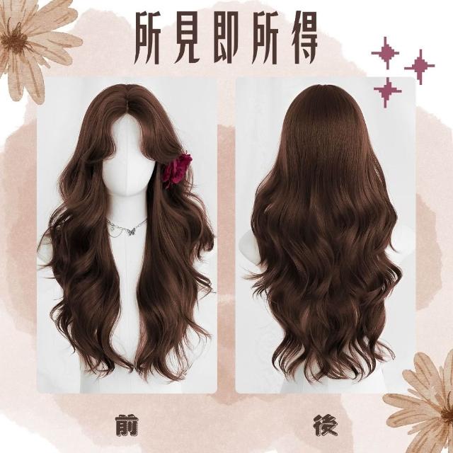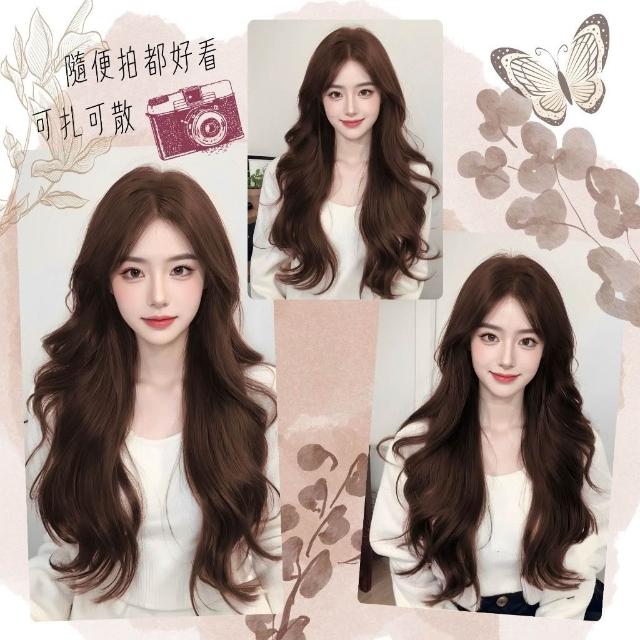 暗夜橘棕 假髮一字手織蕾絲長捲髮化纖模擬中分大波浪捲髮啞光蛋白絲