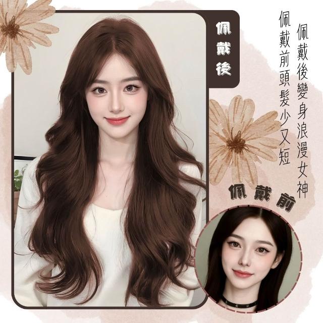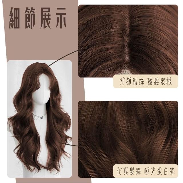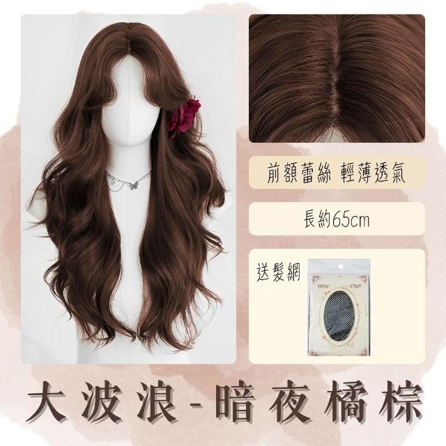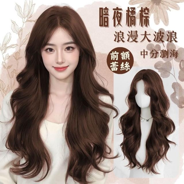 暗夜橘棕 假髮一字手織蕾絲長捲髮化纖模擬中分大波浪捲髮啞光蛋白絲