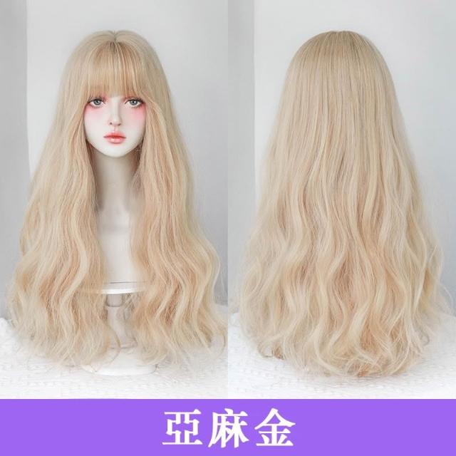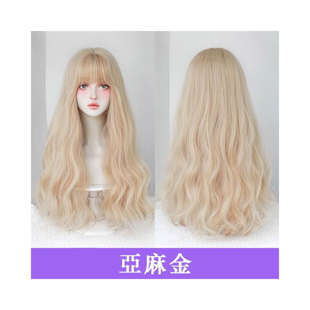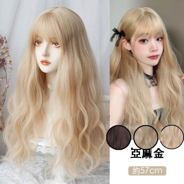 亞麻金 整頂假髮 假髮 空氣劉海 假髮女 wig 仿真 假髮女整頂 長捲假髮 水波紋假髮 男女假髮