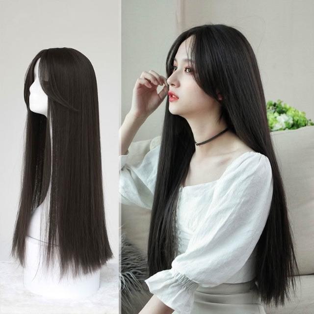 中分八字瀏海 整頂假髮 假髮 空氣劉海 假髮女 wig 假髮 假髮女整頂 黑色假髮 黑長直假髮