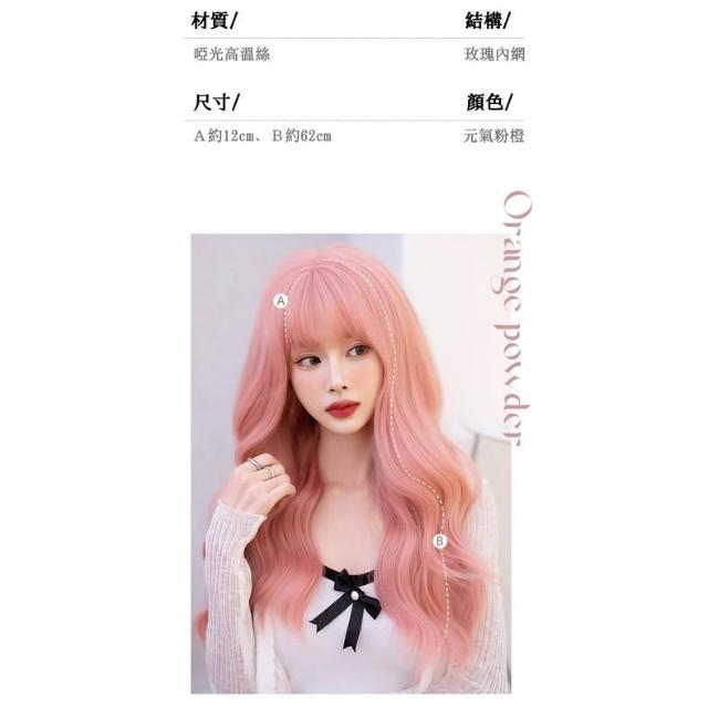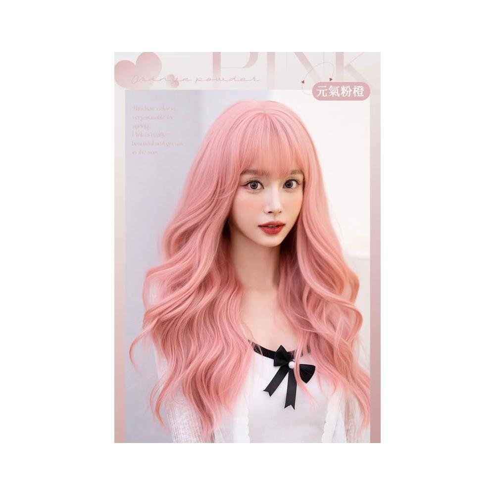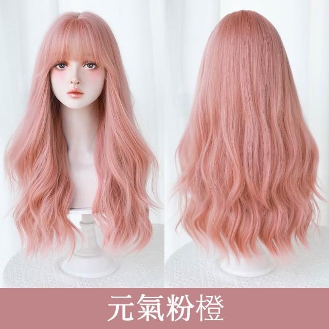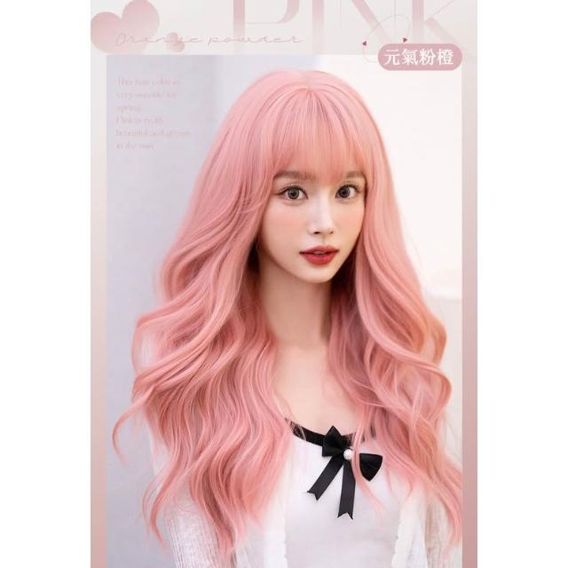 元氣粉橙 整頂假髮 假髮 空氣劉海 假髮女 wig 假髮 長捲假髮 大波浪假髮 女生假髮 假頭髮