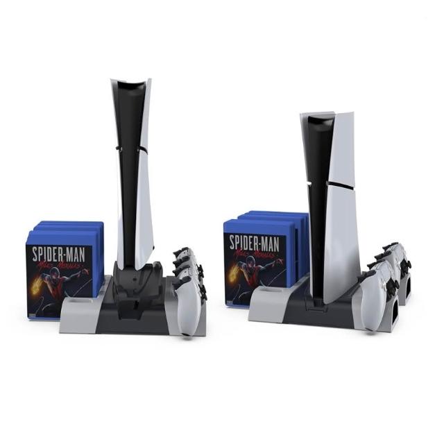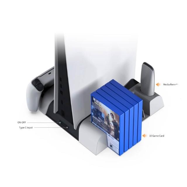 Dobe PS5 Slim PRO 多功能散熱充電底座 直立架 光碟收納 雙手把充電 PS5全機型適用-梓萌電玩