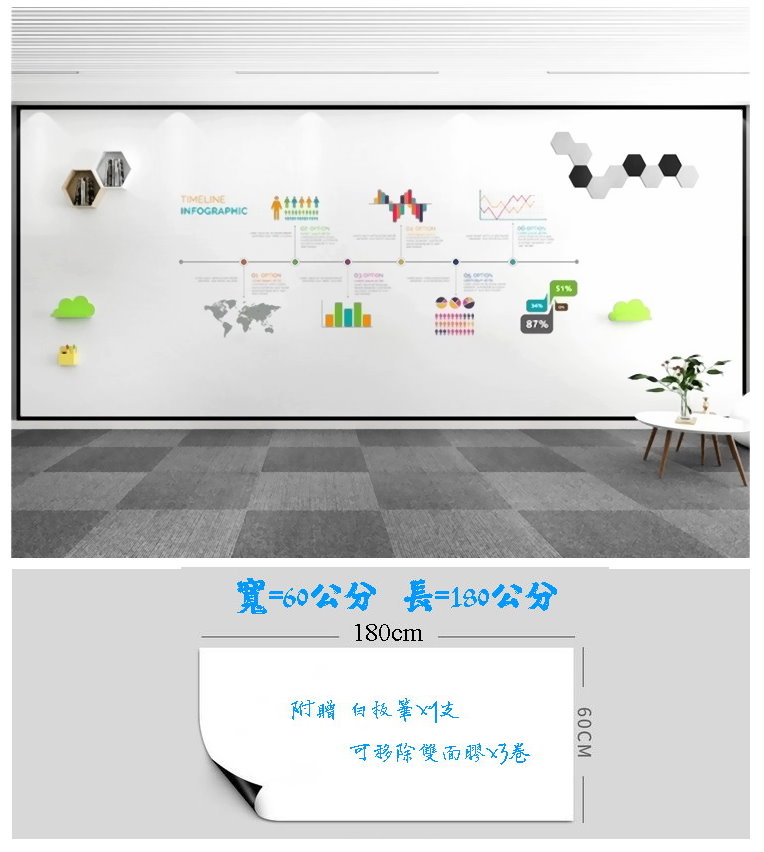 MIT磁性軟白板貼/彩繪黑板貼(60cmX180cm)磁鐵可吸/環保無毒/可重複使用/可彎曲/可剪裁/白板/黑板//牆貼