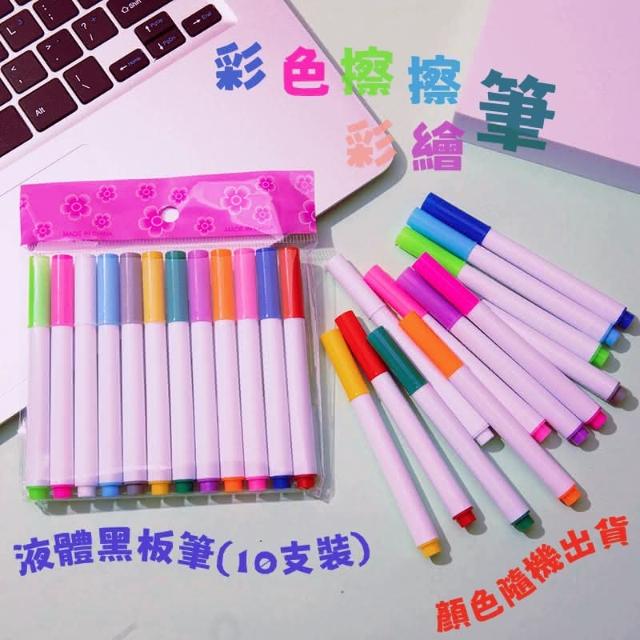 彩繪擦擦筆黑板筆(10支裝)顏色隨機出貨 彩色環保白板筆 易擦寫白板筆 磁性白板筆 液體粉筆 彩繪白板筆 不乾墨白板筆 好寫好擦除