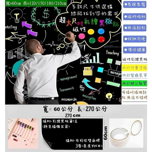 MIT磁性軟白板貼/彩繪黑板貼(60cmX270cm)磁鐵可吸/環保無毒/可重複使用/可彎曲/可剪裁/白板/黑板/牆貼
