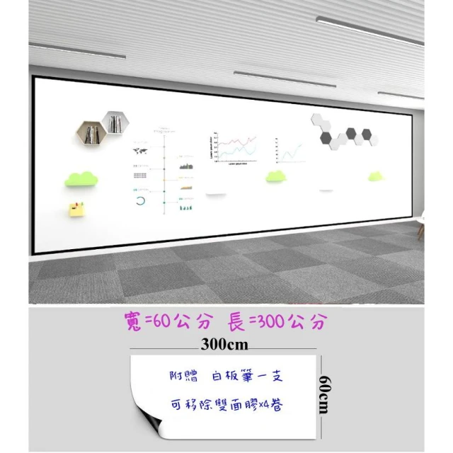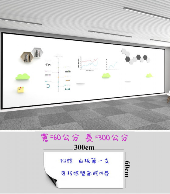 MIT磁性軟白板貼/彩繪黑板貼(60cmX300cm)磁鐵可吸/環保無毒/可攜式無重複使用/可彎曲/可剪裁/白板/黑板/綠板/牆貼
