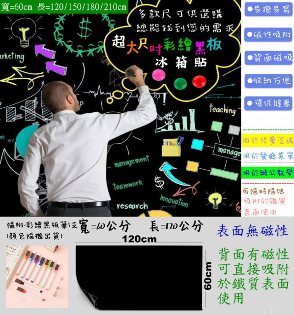 MIT(60X120公分)磁性軟白板冰箱貼/彩繪黑板冰箱貼-背面有磁性可吸鐵片鐵質表面/環保無毒/重複使用可彎曲/白板黑板綠板
