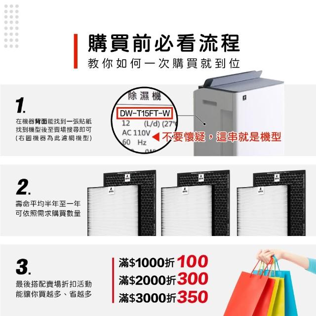 Mitewithmom 著媽適用 Sharp 夏普 DW-T15FT-H DW-T15FT-W FZ-J20HFE 清淨除濕機 濾網 濾芯 蟎著媽