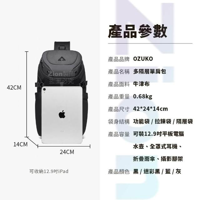 OZUKO2025大容量多功能男士單肩包 13吋筆電包 平板包 防割防潑水 斜背包 肩背包男單肩包、13吋筆電包、斜背包男