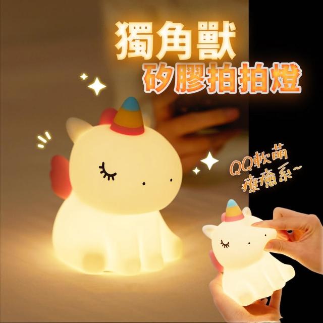 獨角獸小夜燈 可愛LED舒眠燈 助眠燈 捏捏燈 床頭燈 觸控夜燈 拍拍燈 交換禮物 矽膠燈 伴睡燈