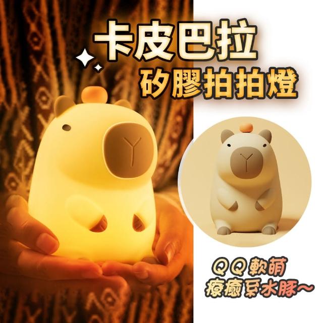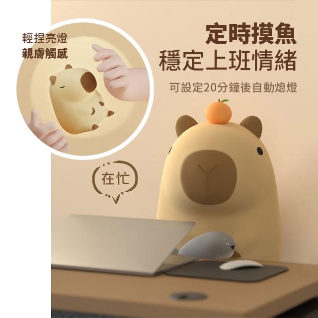 可愛水豚小夜燈 卡皮巴拉小夜燈 水豚君 矽膠捏捏燈 USB氛圍燈 可愛LED小夜燈 伴睡燈 拍拍燈 捏捏燈