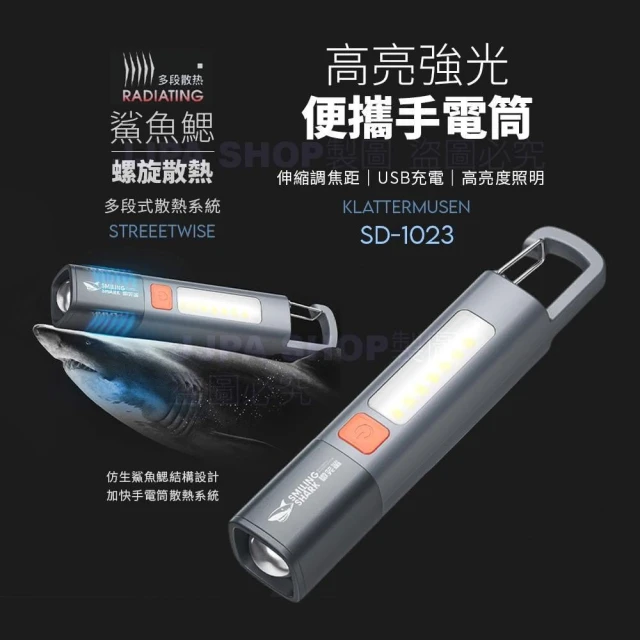 微笑鯊 強光手電筒 可掛手電筒 伸縮變焦 爆亮手電筒 鑰匙燈 多功能手電筒 隨身燈 多功能隨身照明燈 鑰匙扣燈