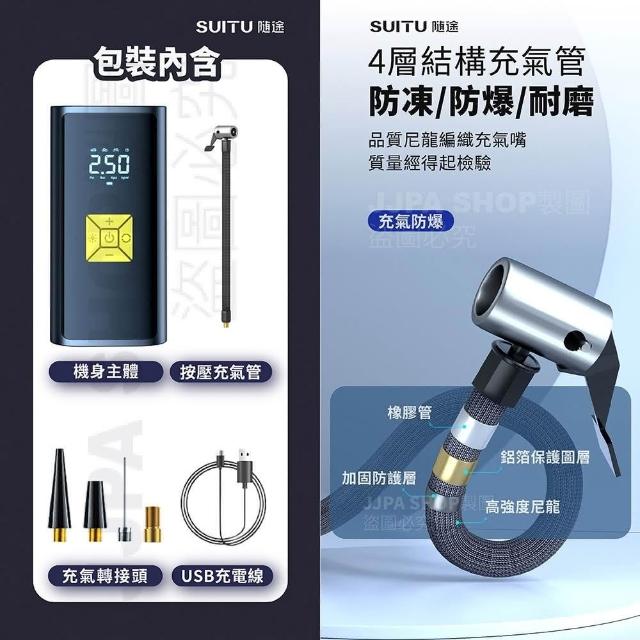 隨途Suitu 電動胎壓打氣機 充氣機兩用款 胎壓偵測Type-C 輪胎充氣機 電動打氣筒 自行車 機車籃球汽車