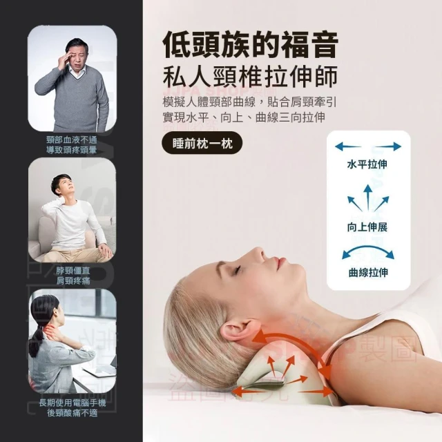 頸椎熱敷牽引枕 雙向頸椎矯正枕 頸部牽引器 熱敷牽引枕 低頭族福音