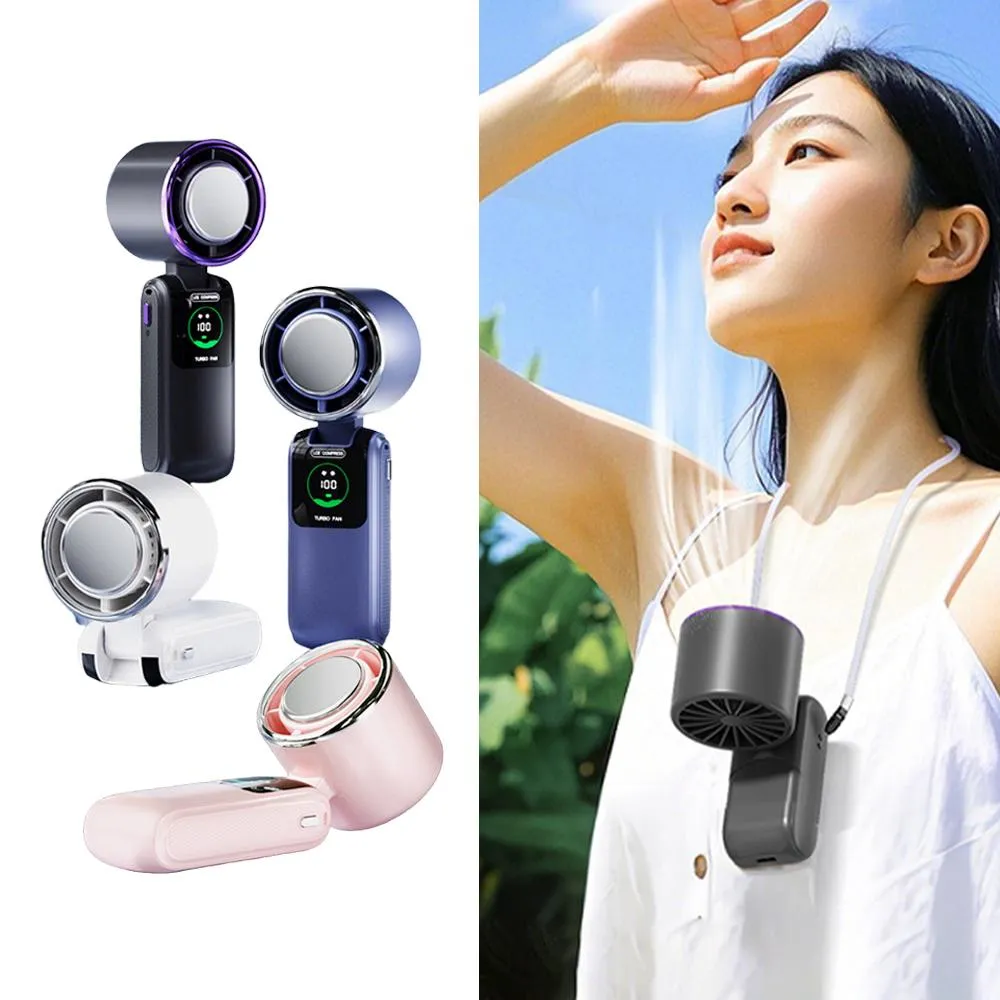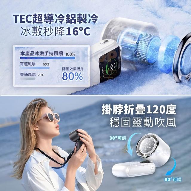 新第五代爆冰高速數顯摺疊暴力風扇 冷敷 100段風量調節 頸掛風扇 渦輪強力送風 半導體製冷 邊吹風邊冰敷 夏日必備降溫