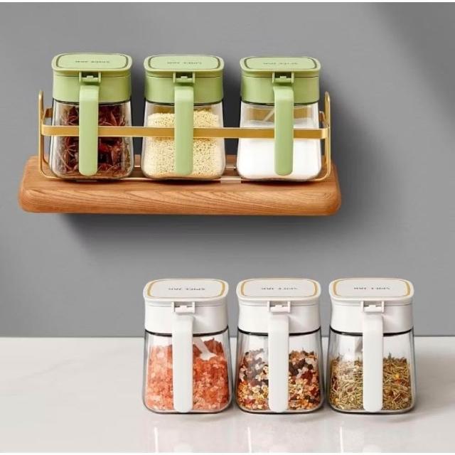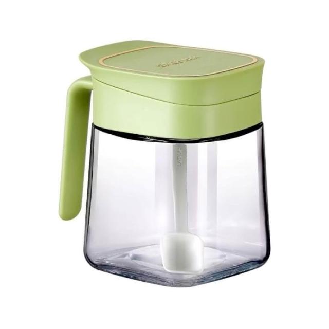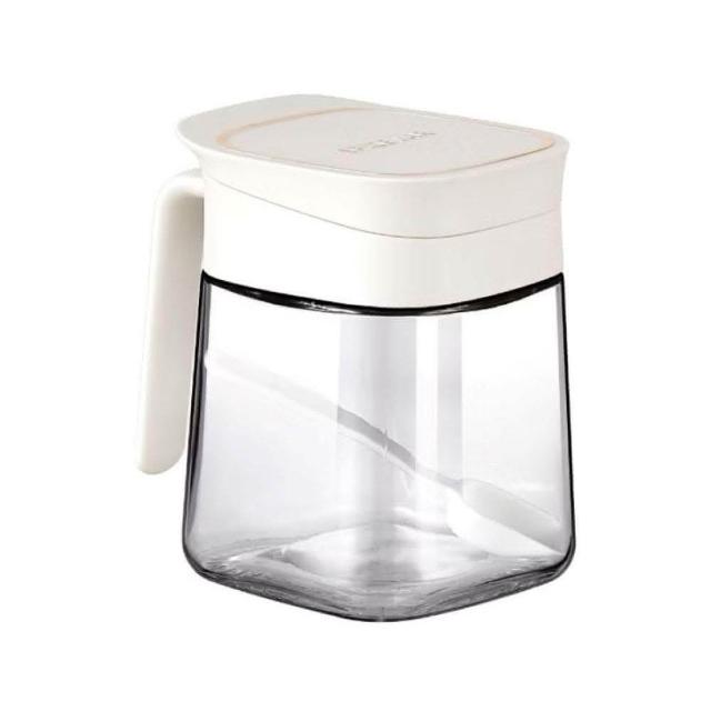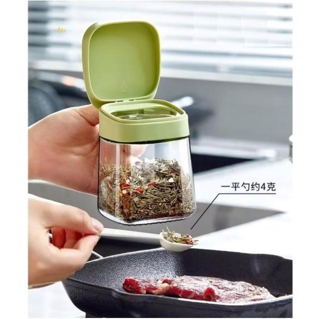 GTPSHOP 北歐風調味罐 按壓式調味盒 玻璃罐 附勺子 調味料收納 300ML 鹽巴罐 有把手 防潮