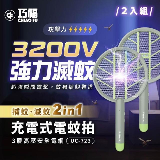 巧福充電式電蚊拍 UC-723 (二入組) Type-C充電/捕蚊燈/捕蚊拍/電擊/捕蚊/LED