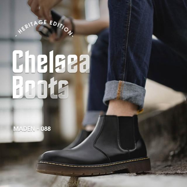 馬登工裝切爾西靴夏季英倫風中幫休閒工裝男鞋黑色高幫真皮馬丁靴子